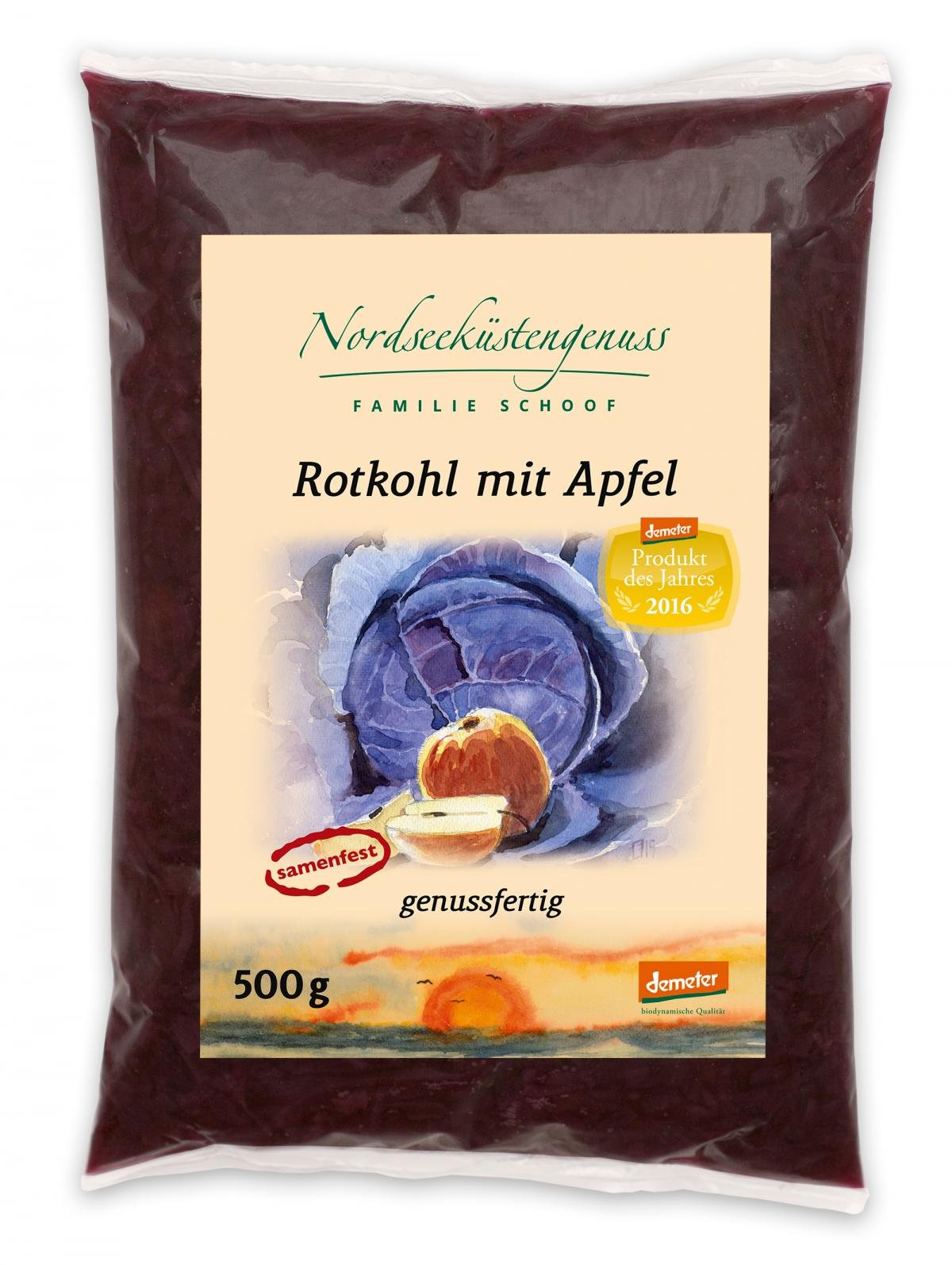 Für unseren typisch norddeutschen »Rotkohl mit Apfel« wird herzhafter, samenfester Rotkohl aus Dithmarschen mit saftigen Äpfeln aus dem Alten Land langsam eingekocht und mit Nelken, Piment und schwarzem Pfeffer verfeinert. Traditionell in Handarbeit hergestellt und genussfertig portioniert – die beste Alternative zum Selberkochen.