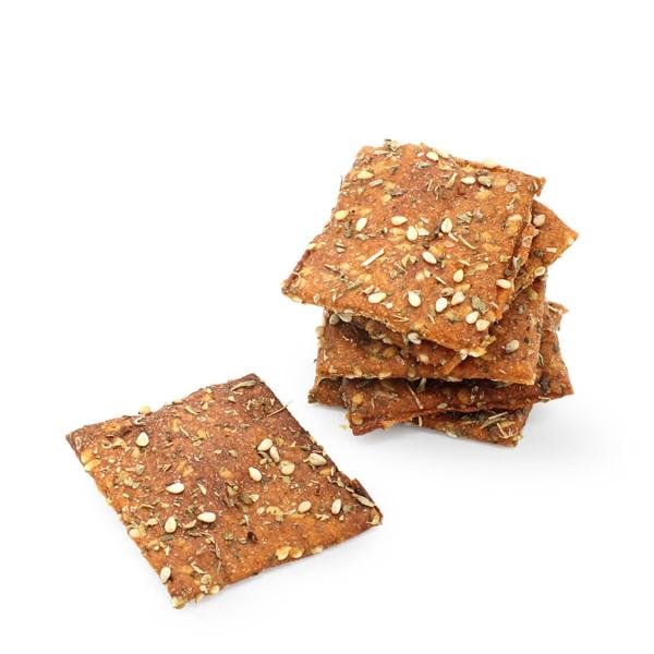 DINKEL (Vollkornmehl)*, ROGGEN (Vollkornmehl)*, SESAM*, Tomatenmark* (11%), Olivenöl*, TAMARI* (SOJASAUCE*), Pizzakräuter*, Steinsalz, Biohefe*, ROGGENSAUERTEIG*, Knoblauchöl*, Kräuter der Provence*, Pizzakräuter*, Paprikagewürz*