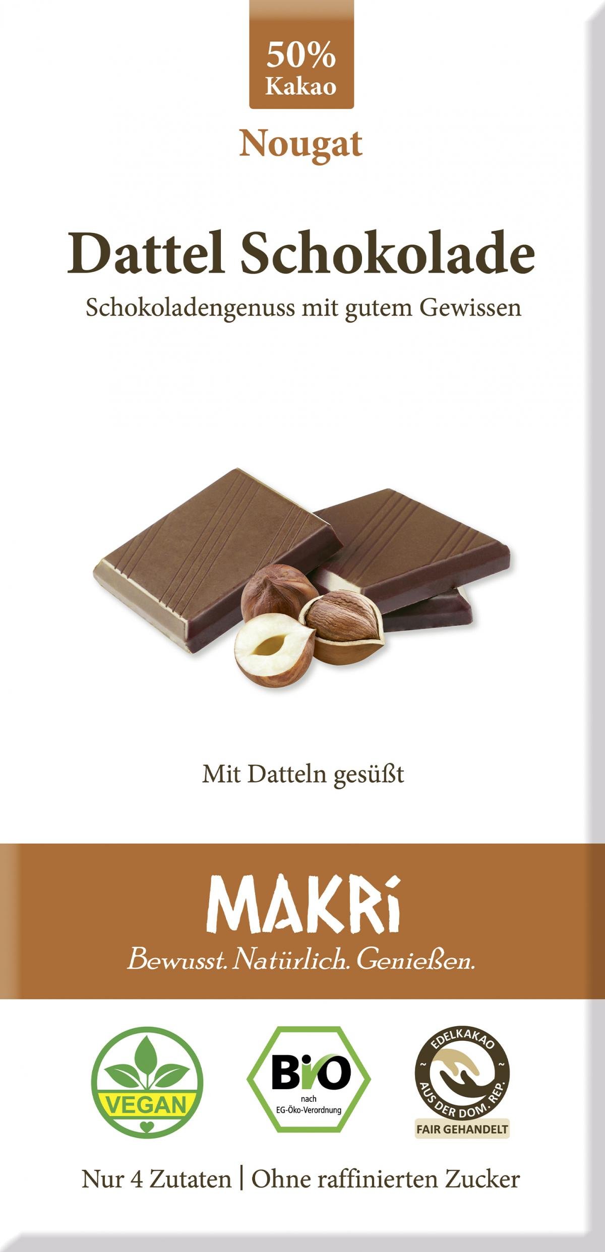 Zart und nussig - MAKRi Nougat ist ein Genuss. Die köstliche Dattel Schokolade punktet durch das Vermischen mit cremigem Haselnussmark, das mit seinem intensiven Haselnussgeschmack auf der Zunge zergeht. Hier kommen Sie beim natürlichen und bewussten Genießen voll auf Ihre Kosten.