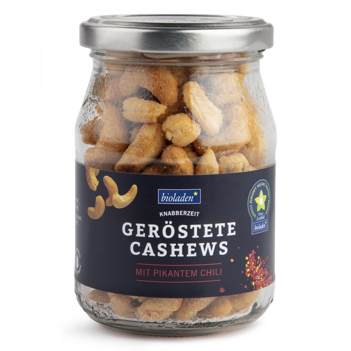 Die bioladen*Cashewkerne stammen aus Burkina Faso. Die Herstellung der Cashews ist reine Handarbeit. Im Geschmack sind sie mild nussig. Sie sind geröstet und mit einer pikanten Chilinote versehen. Optimal zum Knabbern. Im Mehrwegglas.